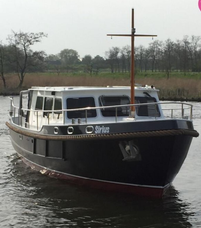 Luxe uitgeruste Barkas met boeg en hekschroef Ruime douche 2 hutten Onderwaterschip behandeld 2024Film volgt bij goed weer