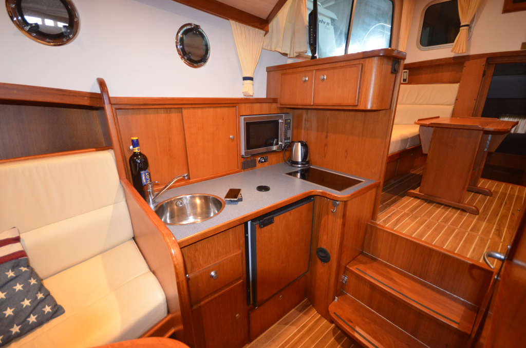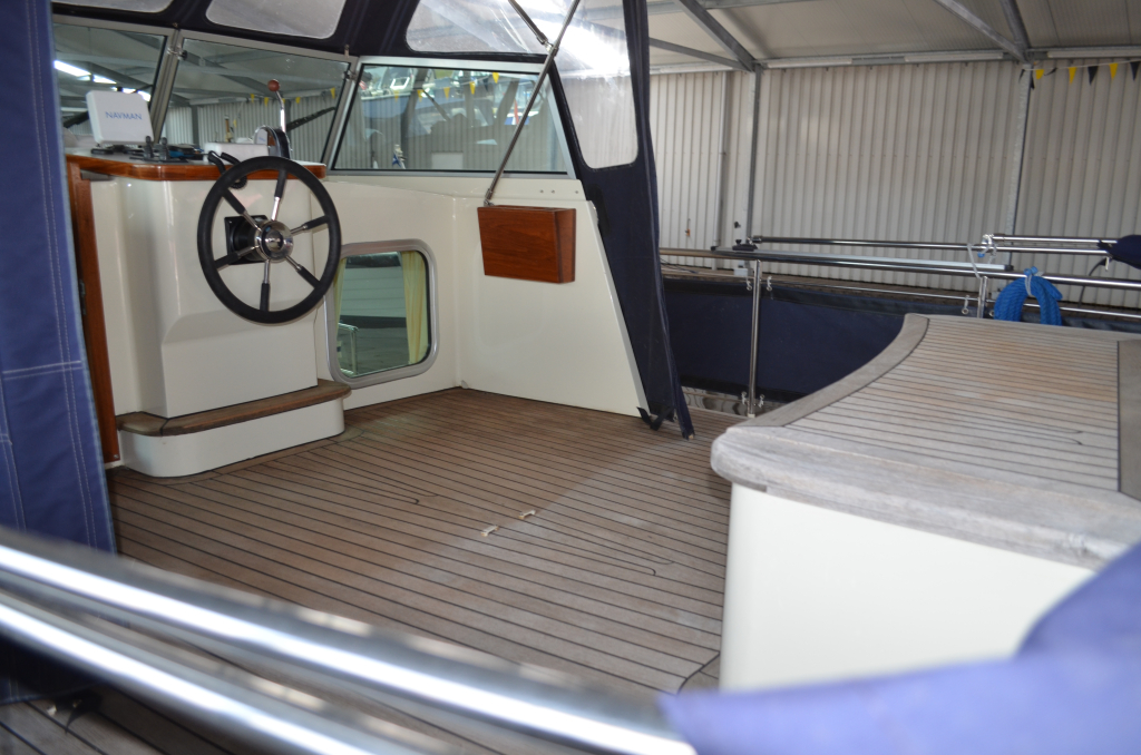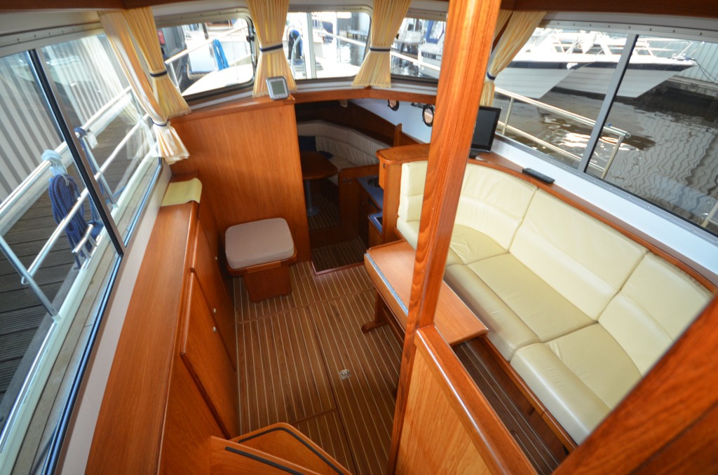 Mooi luxe gebouwd en compleet schip. Boeg en hekschroef, verwarming, douche, vrijstaand bed in AK, zwemplateau, aluminium mast, navigatieverlichting in RVS op dak, luxe teakhout betimmering, lederen bekleding, electrische toilet, ruime bakskist (bank) op achterdek.