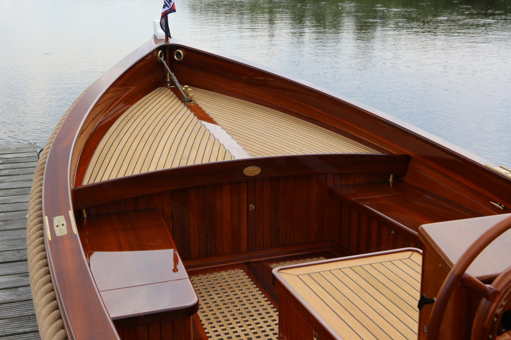 Uniek in zijn klasse: een schitterende kapiteinssloep van 7.20 meter, volledig afgebouwd in massief teak door de gerenommeerde werf De Jong uit Joure – de kraamkamer van de klassieke houten scheepsbouw.