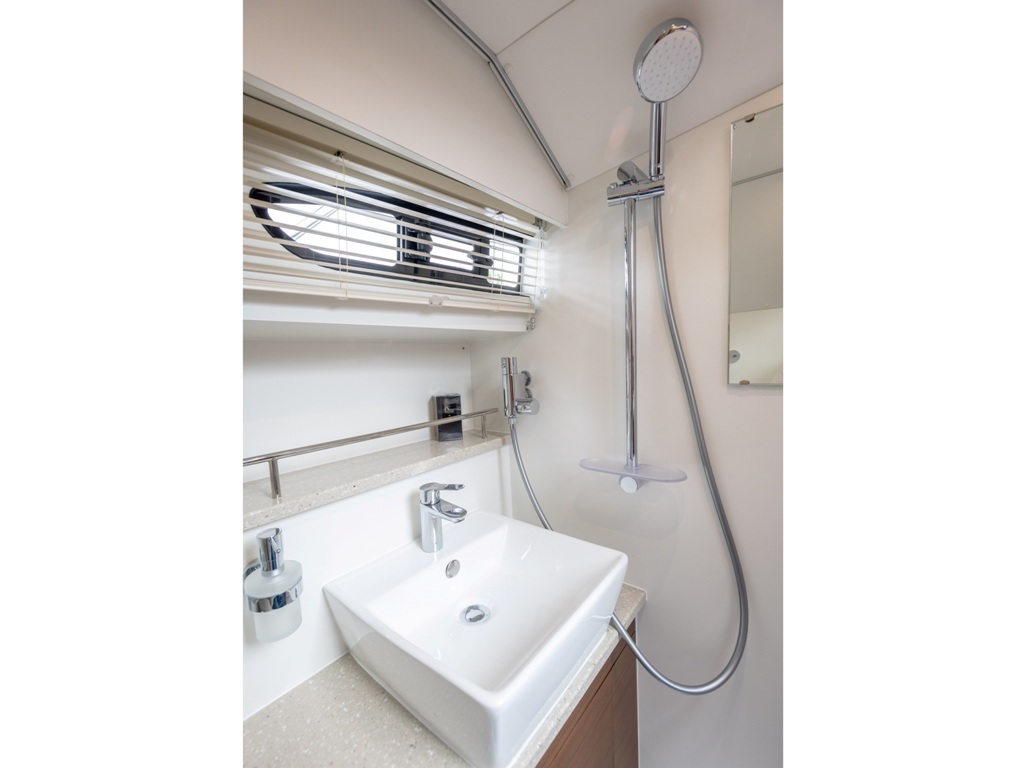 Slaapplaatsen: Vrijstaand bed in voorkajuit / salonbank