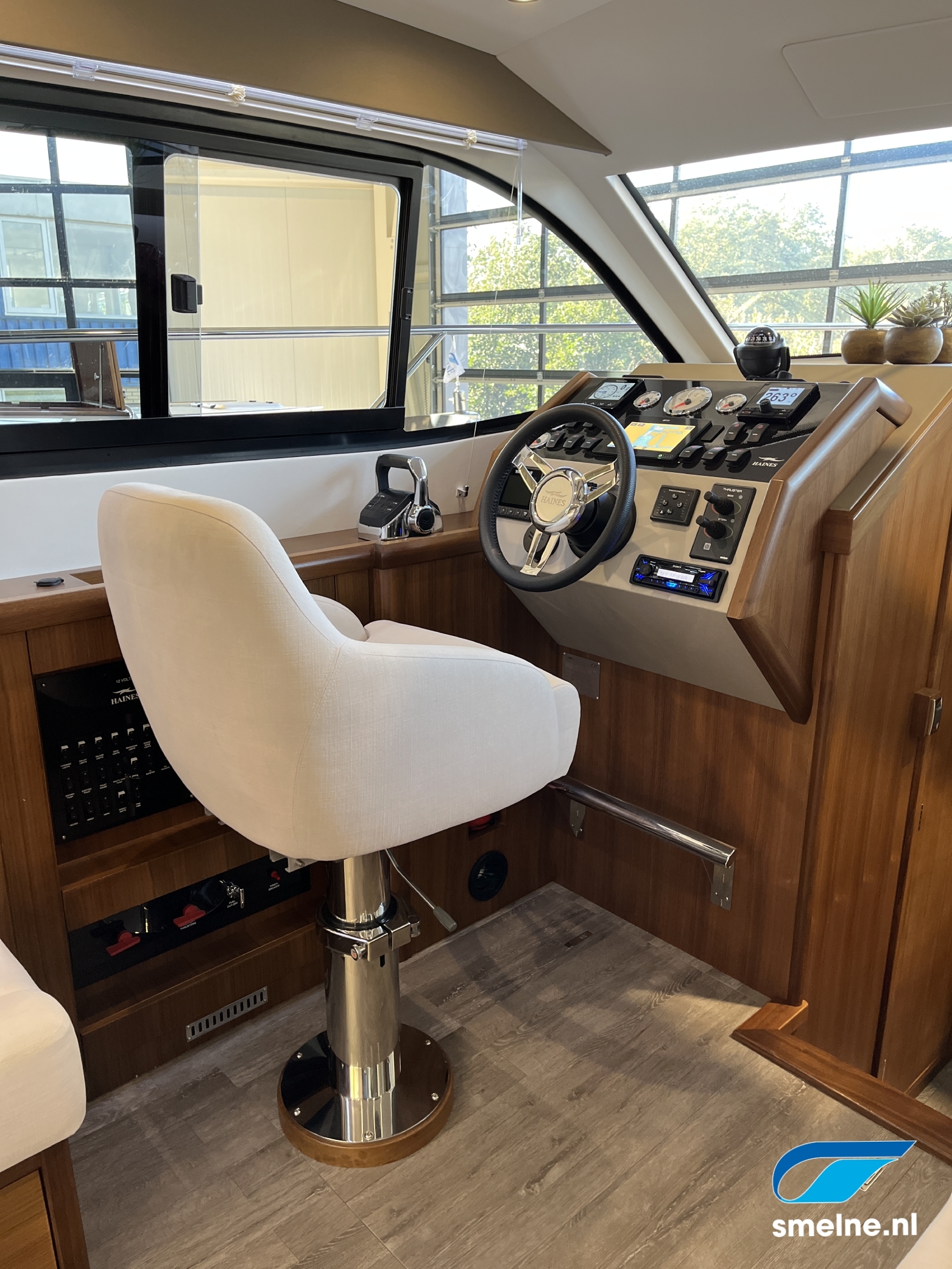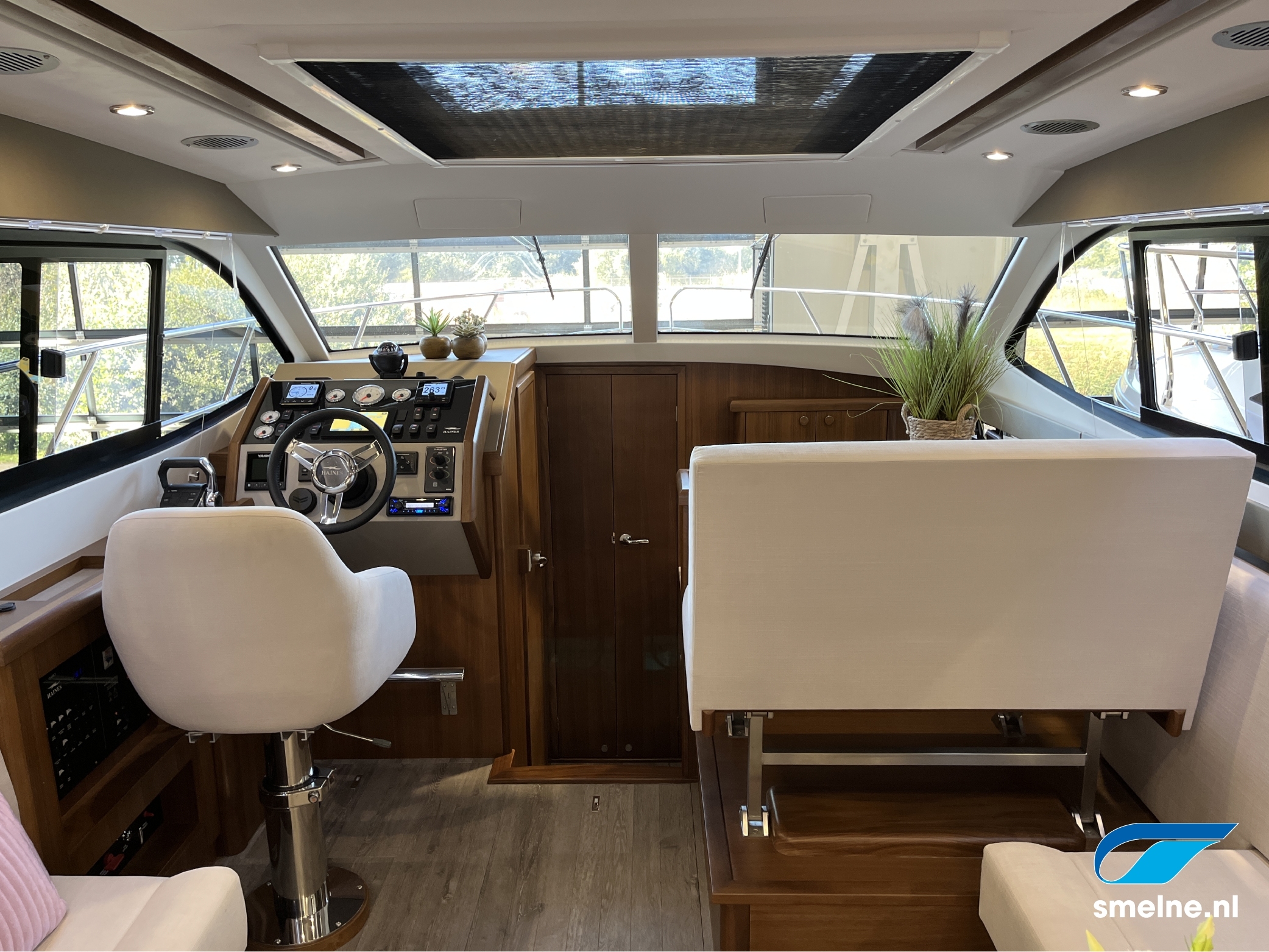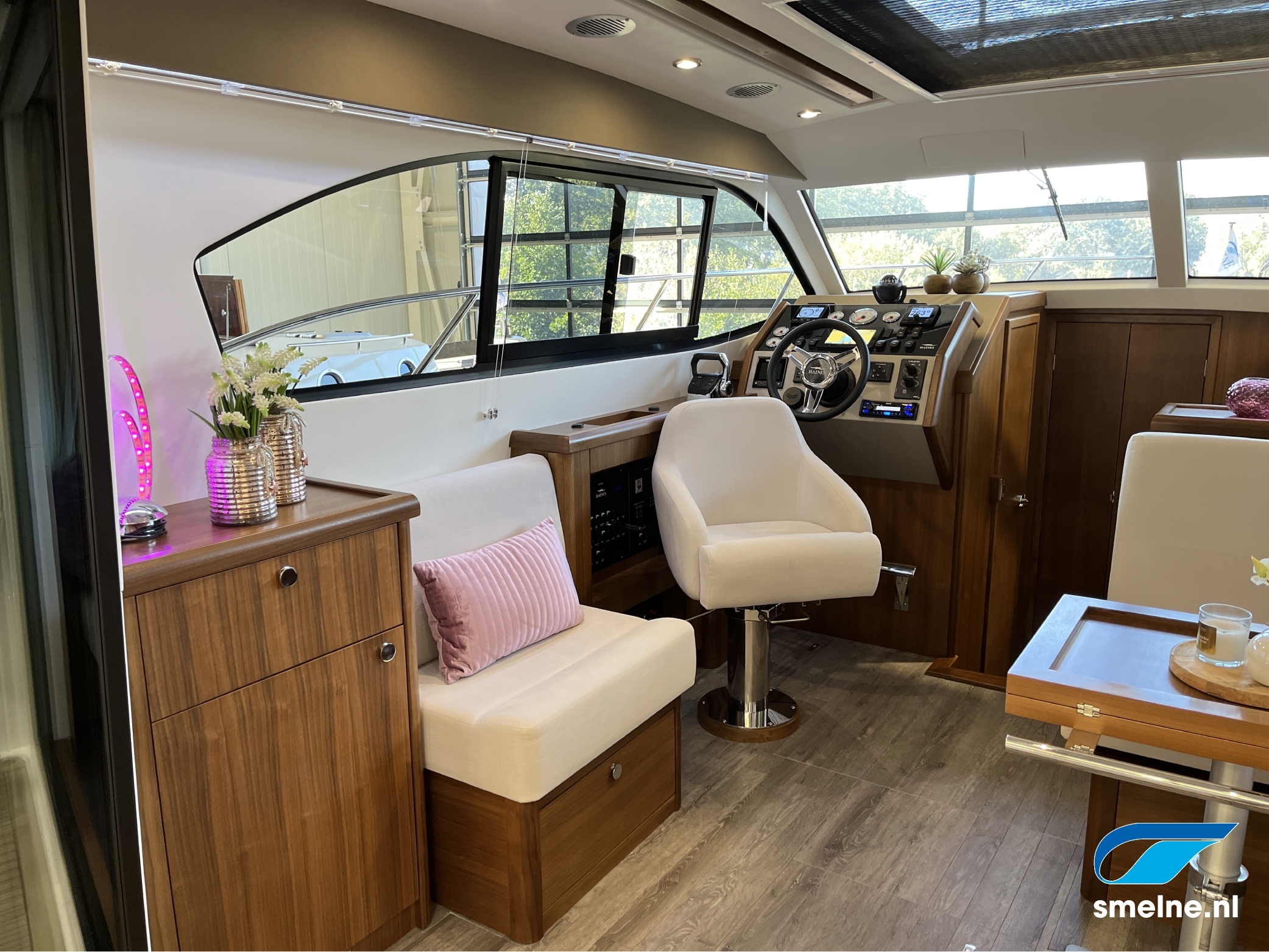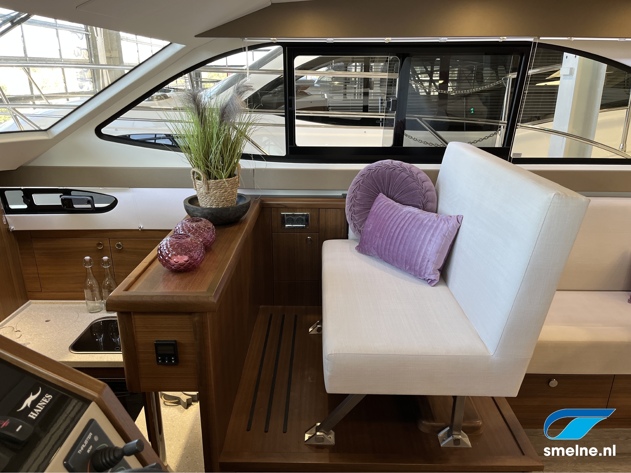 Het gebruik van luxe materialen, het hoogwaardige afwerkingsniveau, de combinatie van het walnoot interieur met moderne afwerking in aardetinten en vele indirecte sfeerverlichting maken deze Haines 32 Offshore een echte eyecatcher!