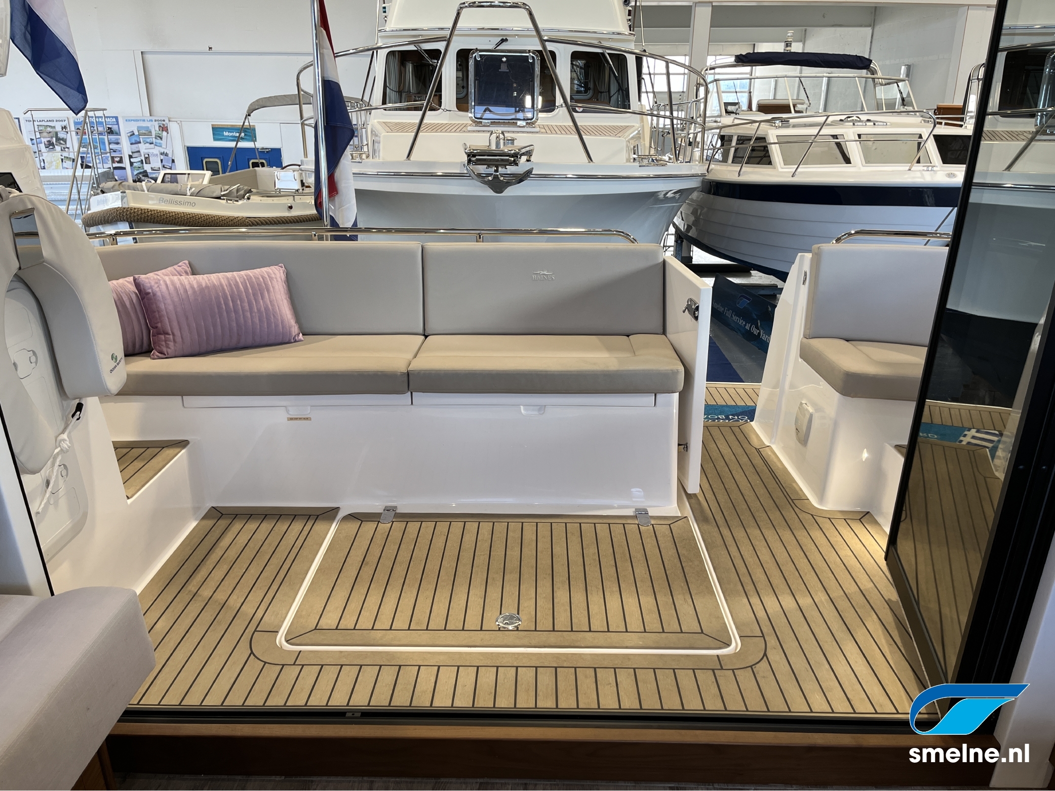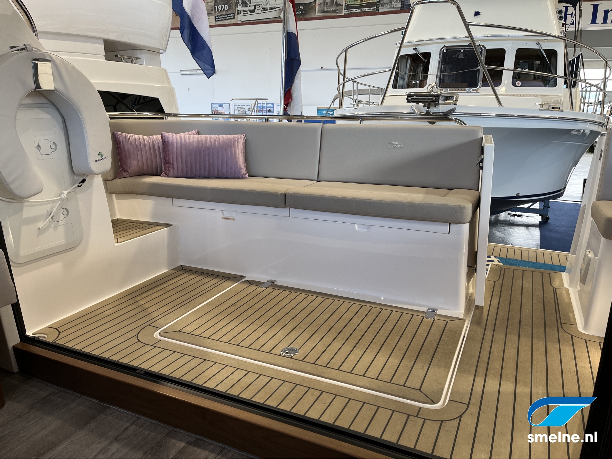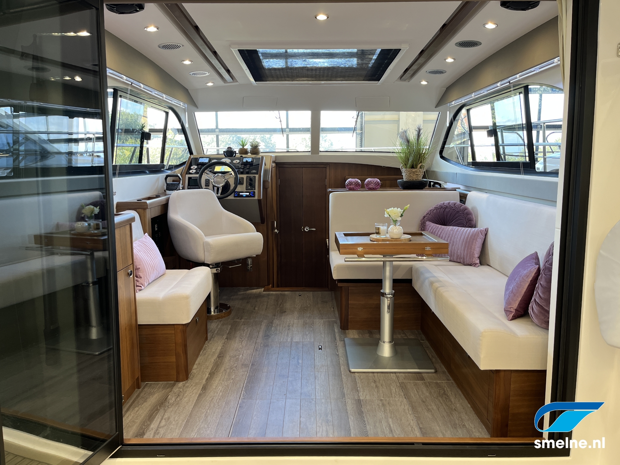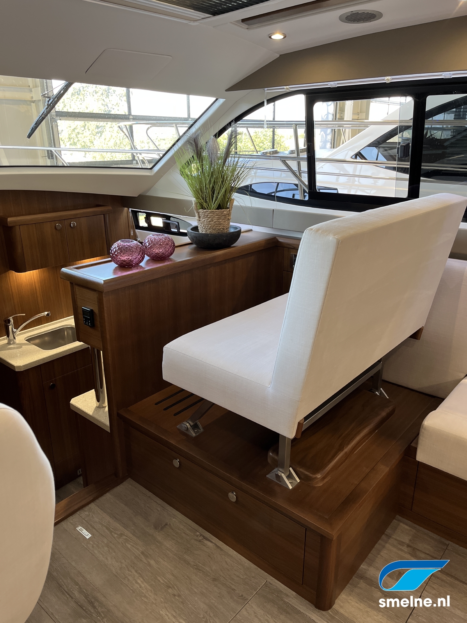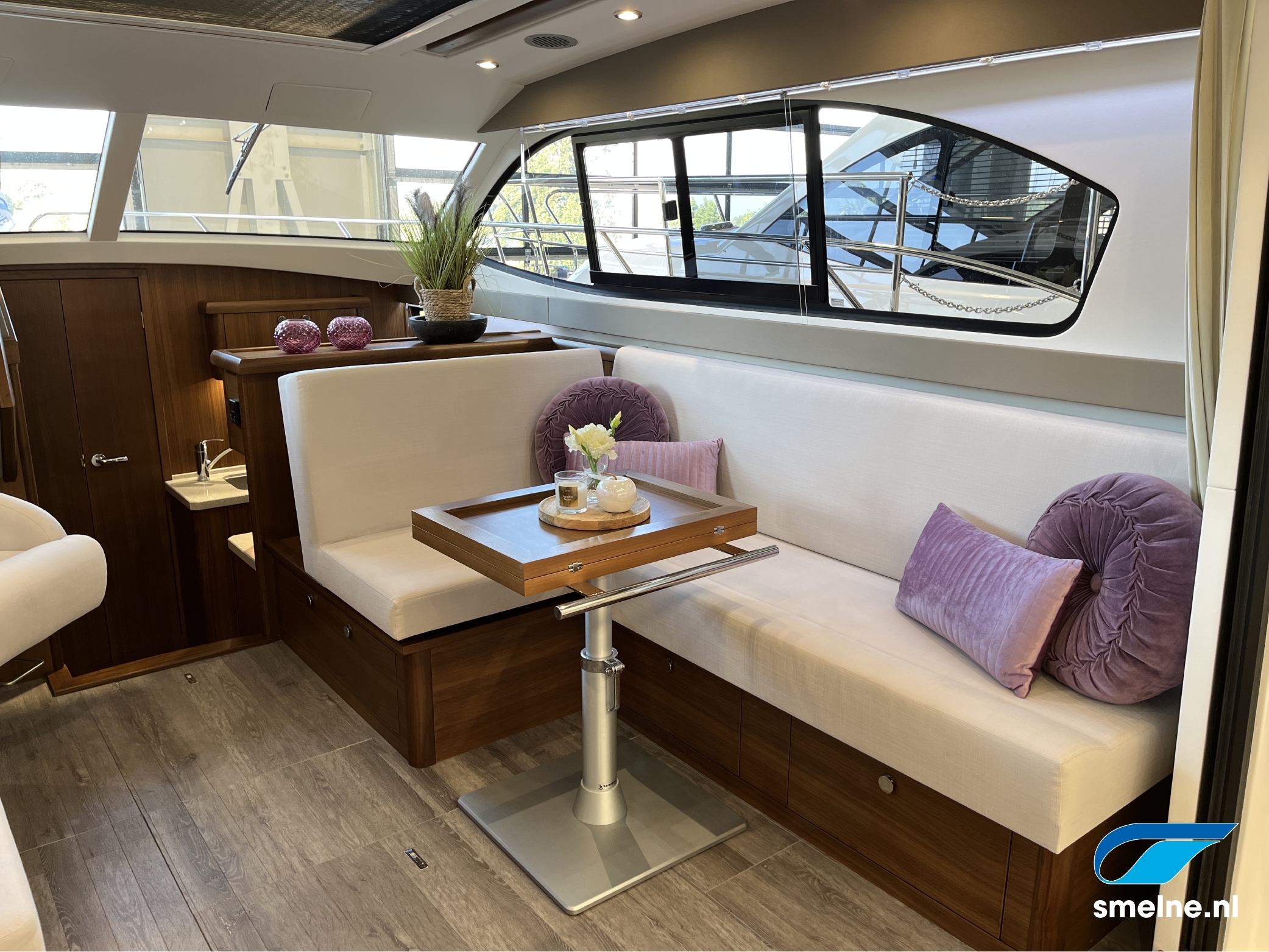 Het gebruik van luxe materialen, het hoogwaardige afwerkingsniveau, de combinatie van het walnoot interieur met moderne afwerking in aardetinten en vele indirecte sfeerverlichting maken deze Haines 32 Offshore een echte eyecatcher!