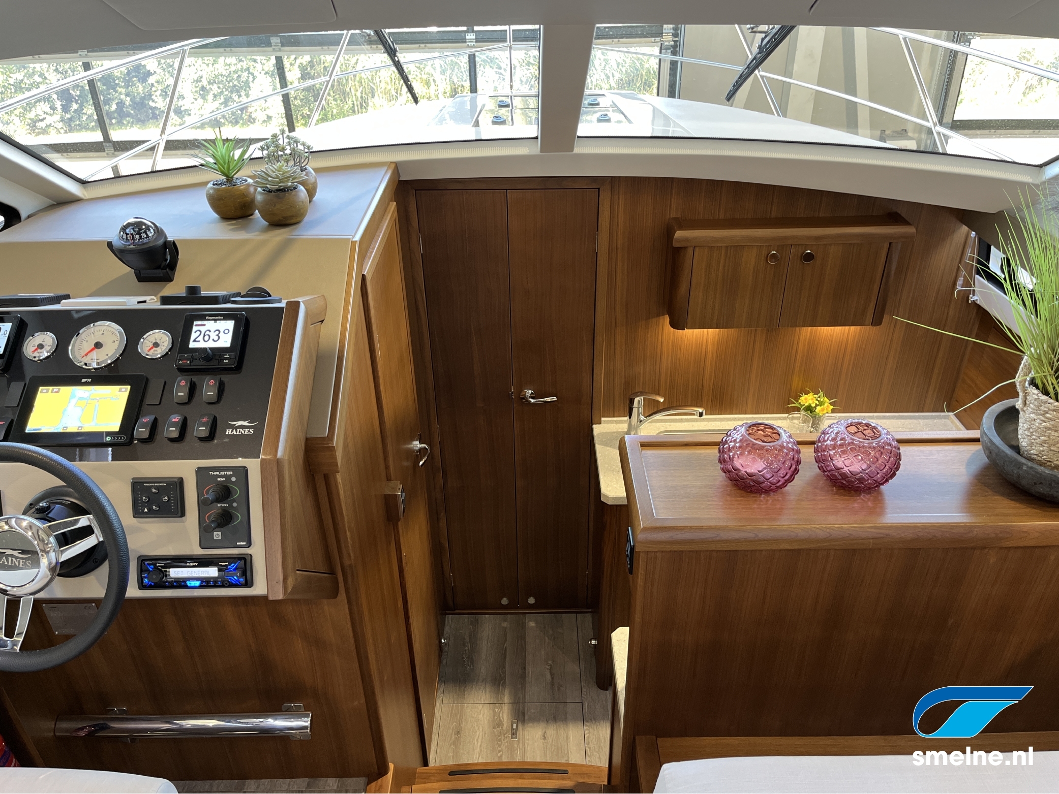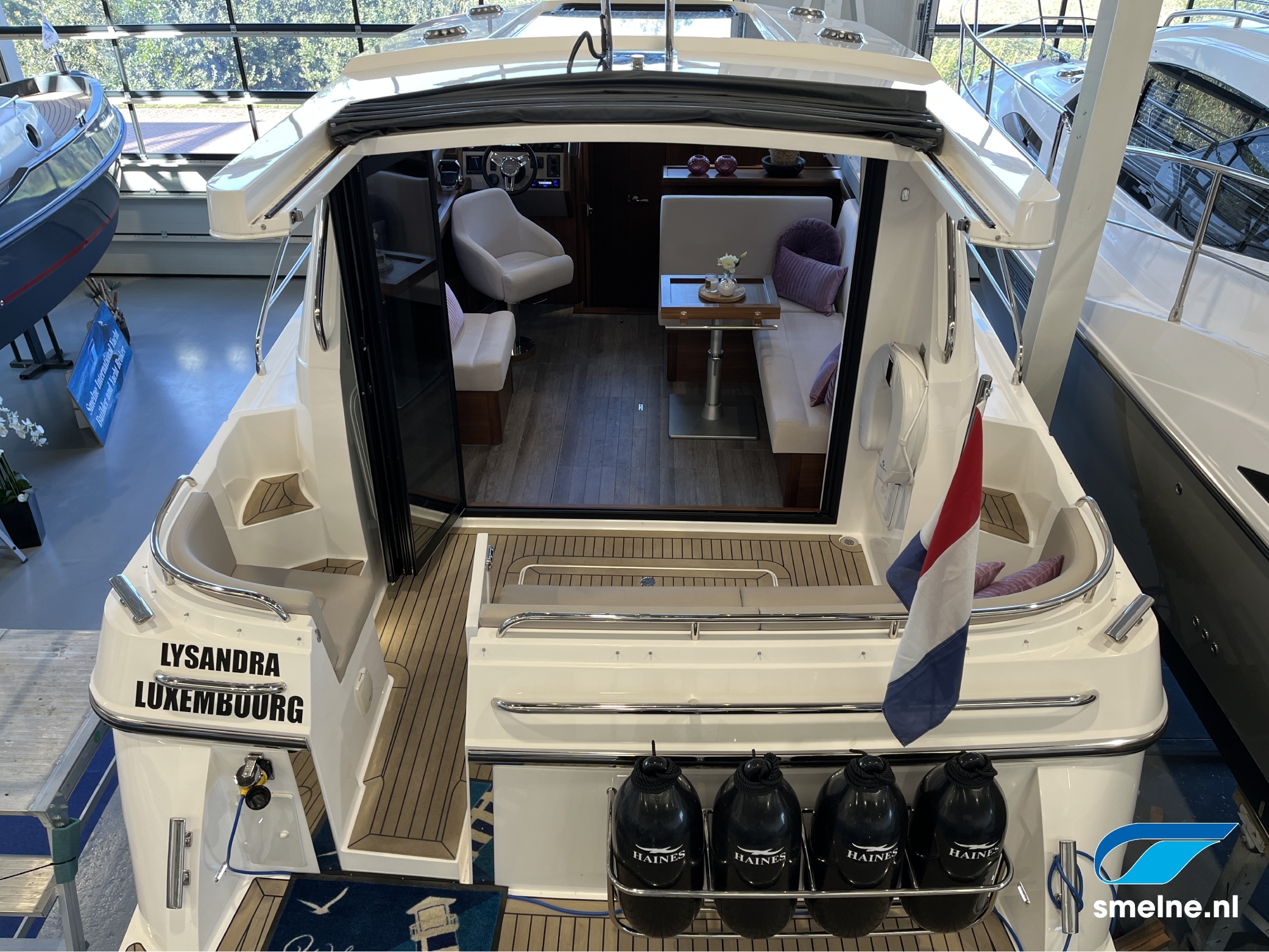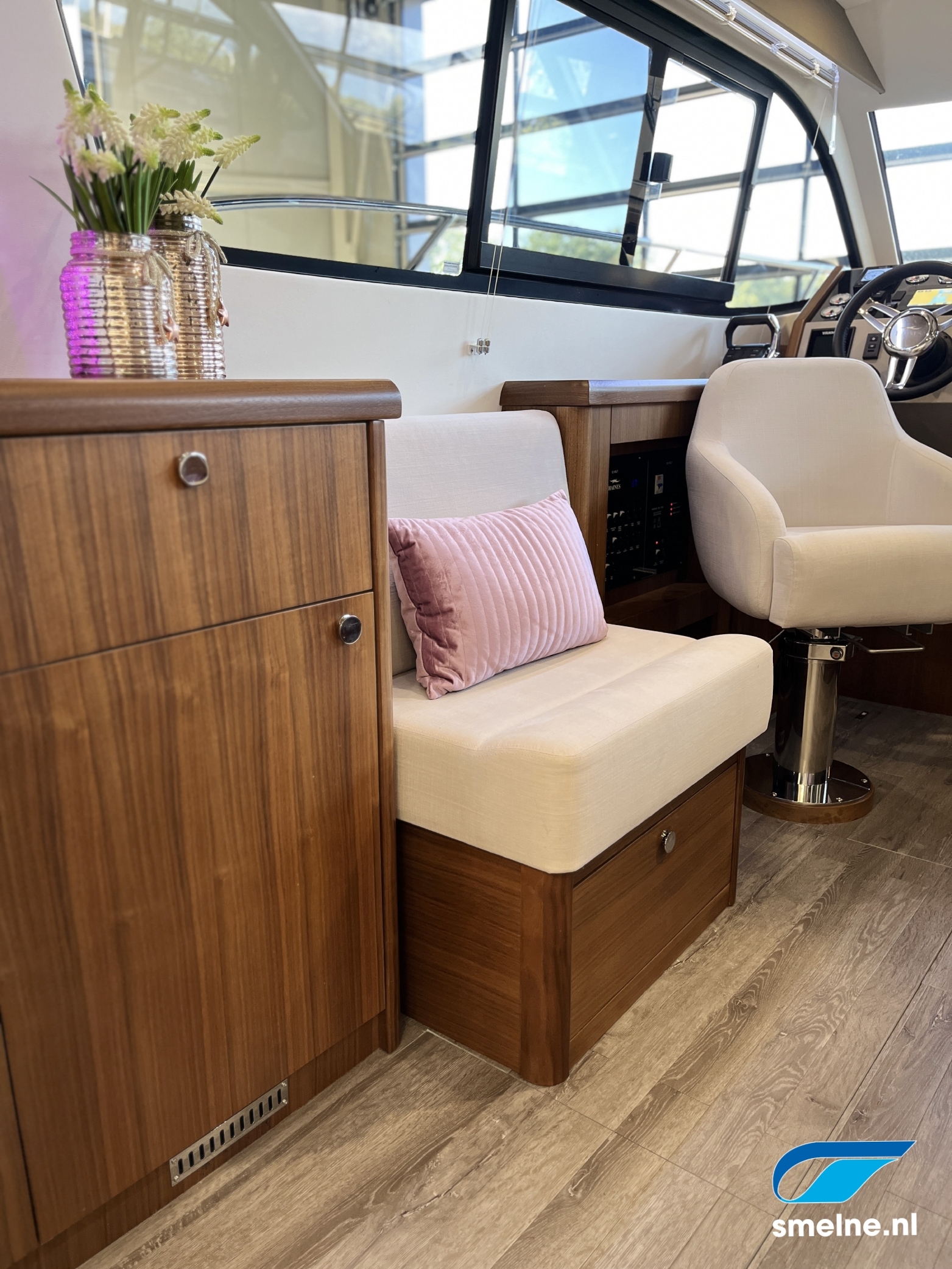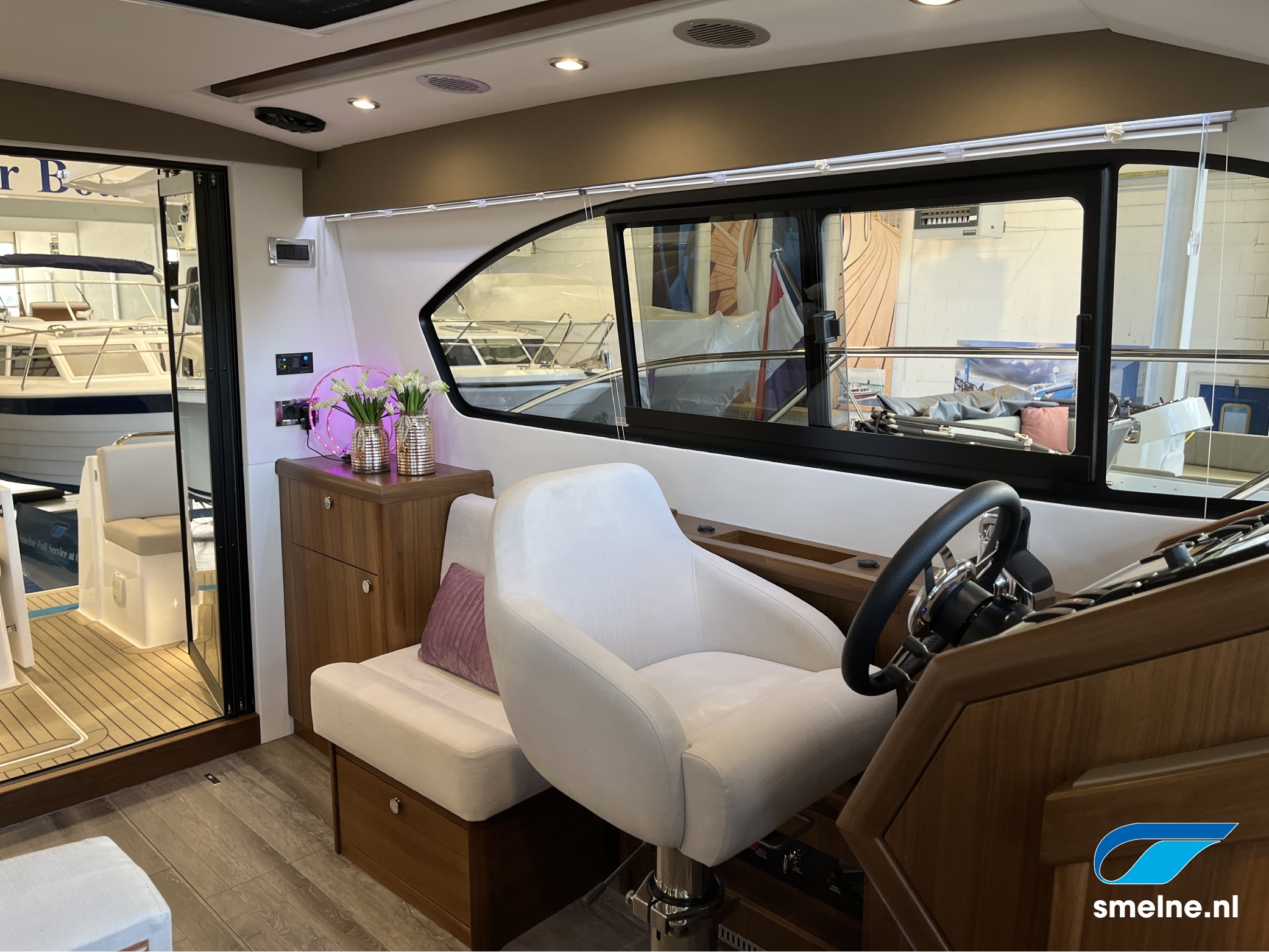 Het gebruik van luxe materialen, het hoogwaardige afwerkingsniveau, de combinatie van het walnoot interieur met moderne afwerking in aardetinten en vele indirecte sfeerverlichting maken deze Haines 32 Offshore een echte eyecatcher!