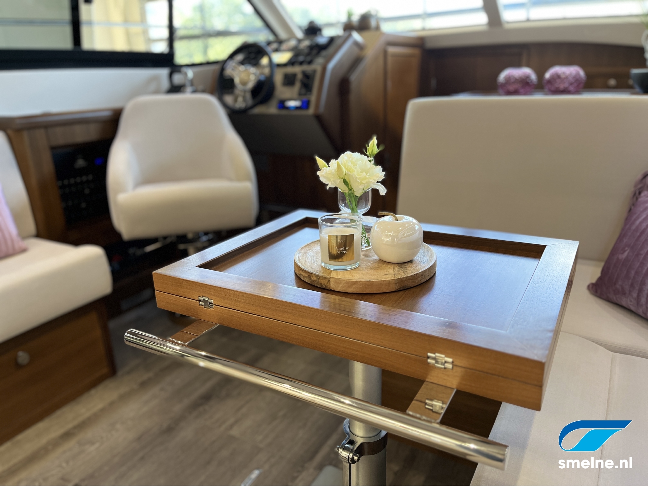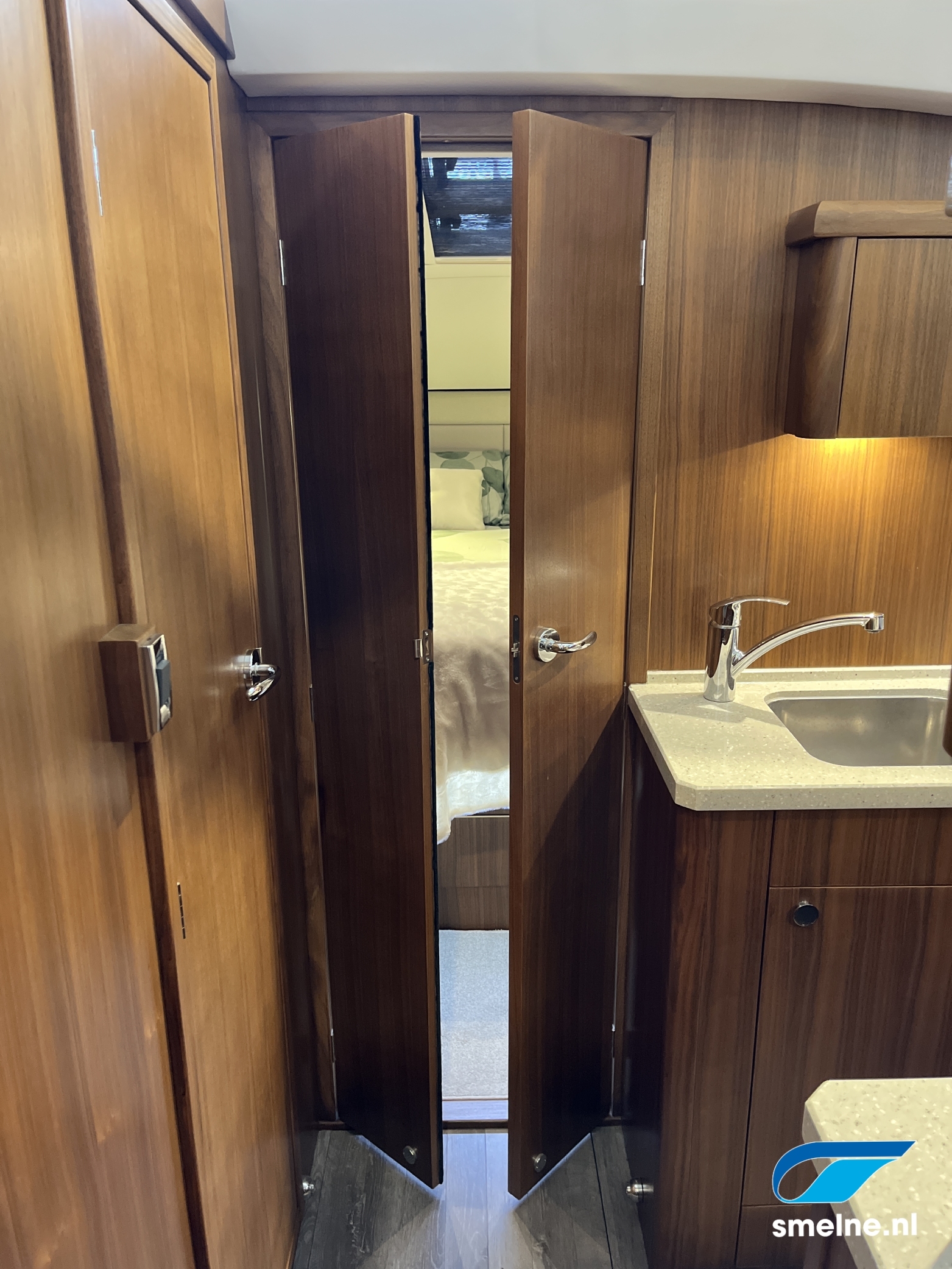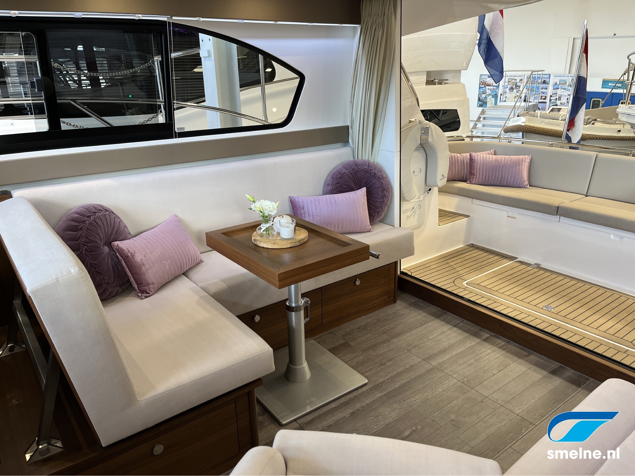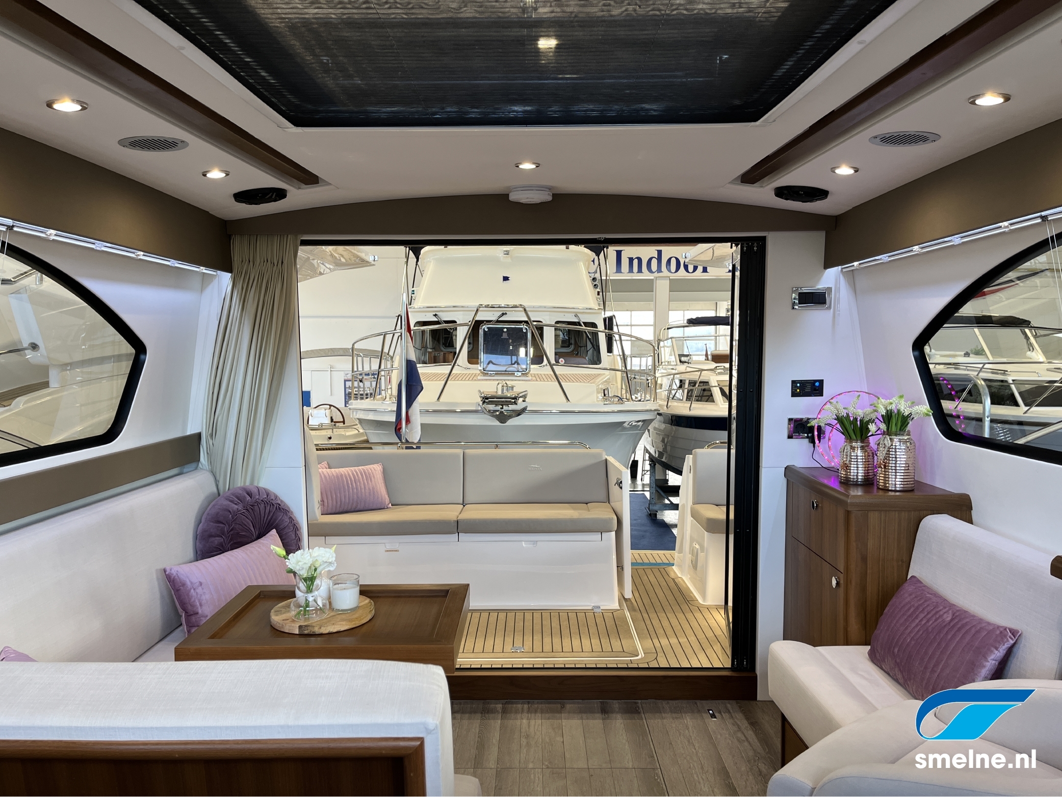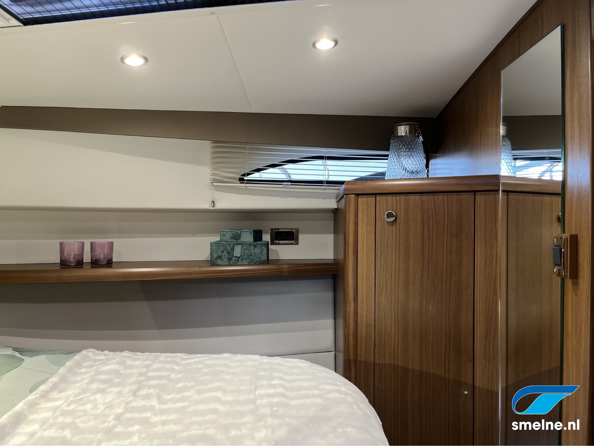 Het gebruik van luxe materialen, het hoogwaardige afwerkingsniveau, de combinatie van het walnoot interieur met moderne afwerking in aardetinten en vele indirecte sfeerverlichting maken deze Haines 32 Offshore een echte eyecatcher!