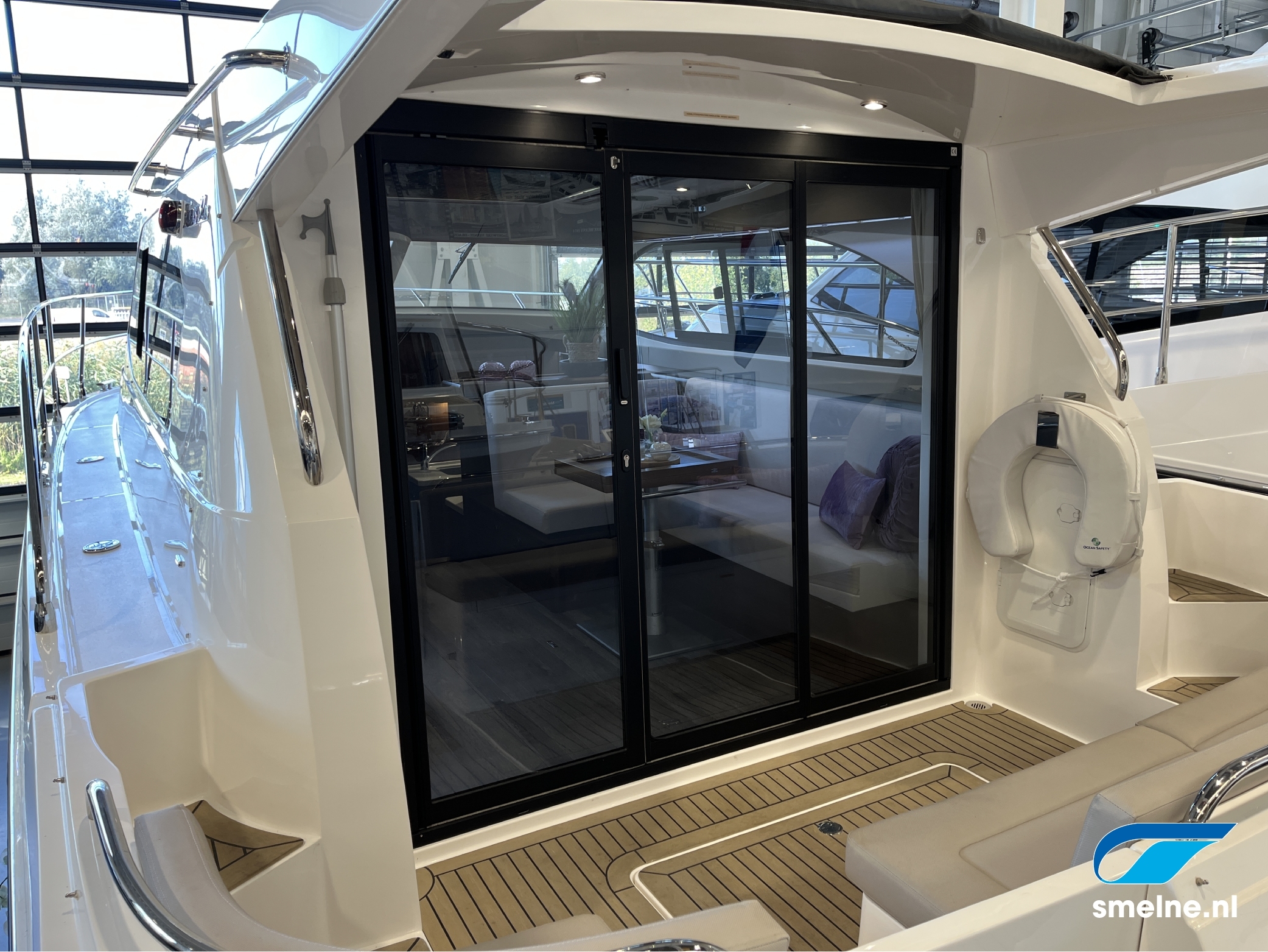 De Haines 32 Offshore is voorzien van een slimme indeling die maximaal gebruik maakt van de beschikbare ruimte. Vanuit de open kuip beleeft u een ontspannen vaarervaring en staat u in nauw contact met de schipper die vanaf de binnenstuurstand moeiteloos naar de gewenste ligplaats manoeuvreert. Vanuit de comfortabele salonbank is een perfect uitzicht rondom over het vaargebied en door het langs-deel om te klappen ontstaat er een 2-persoons meevaarbank.