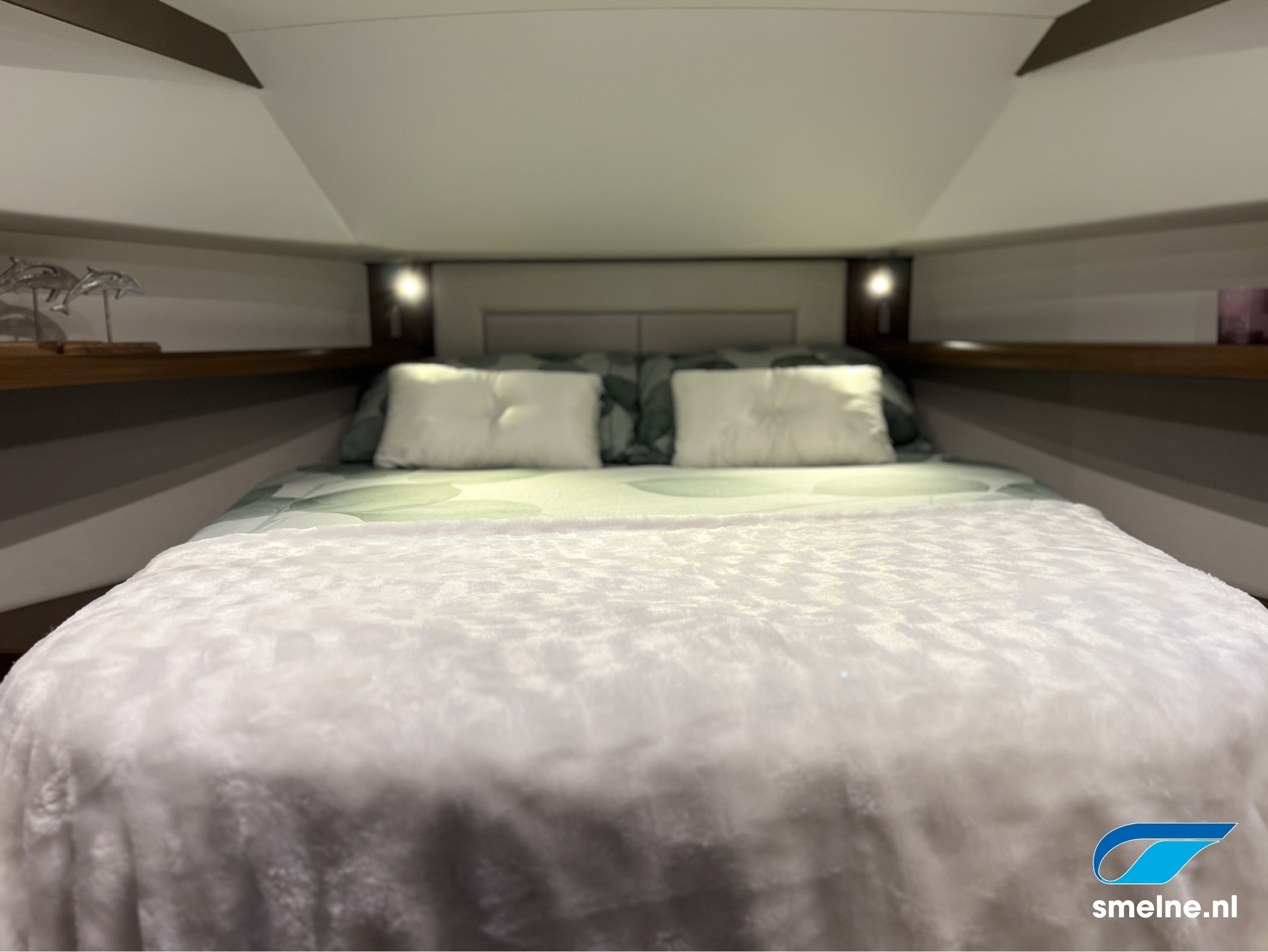 Slaapplaatsen: Vrijstaand dubbel bed in voorkajuit / salon bank om te bouwen tot extra slaapplaats