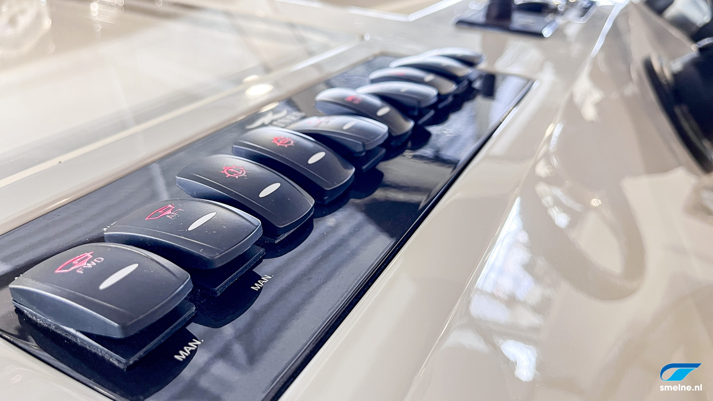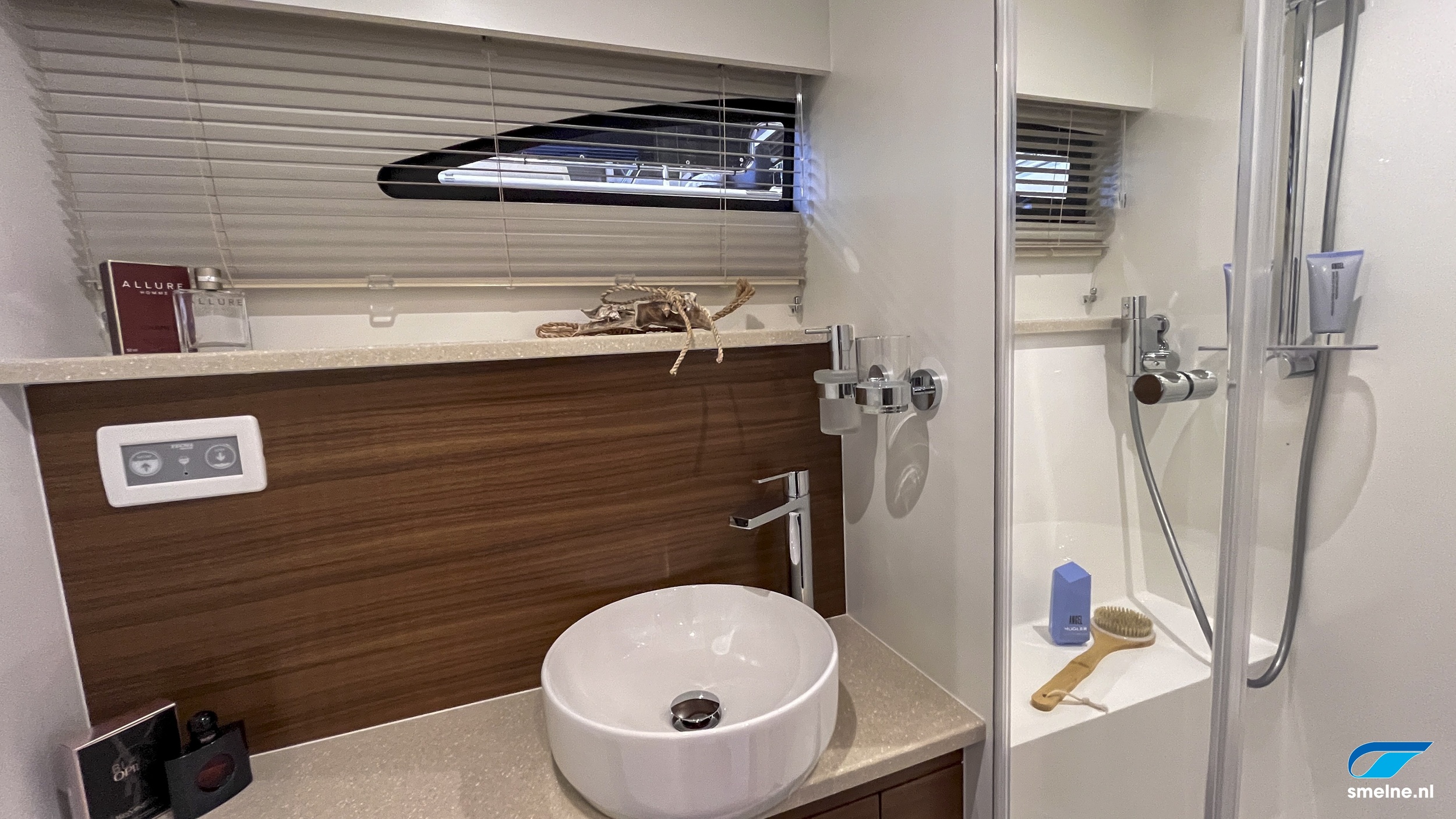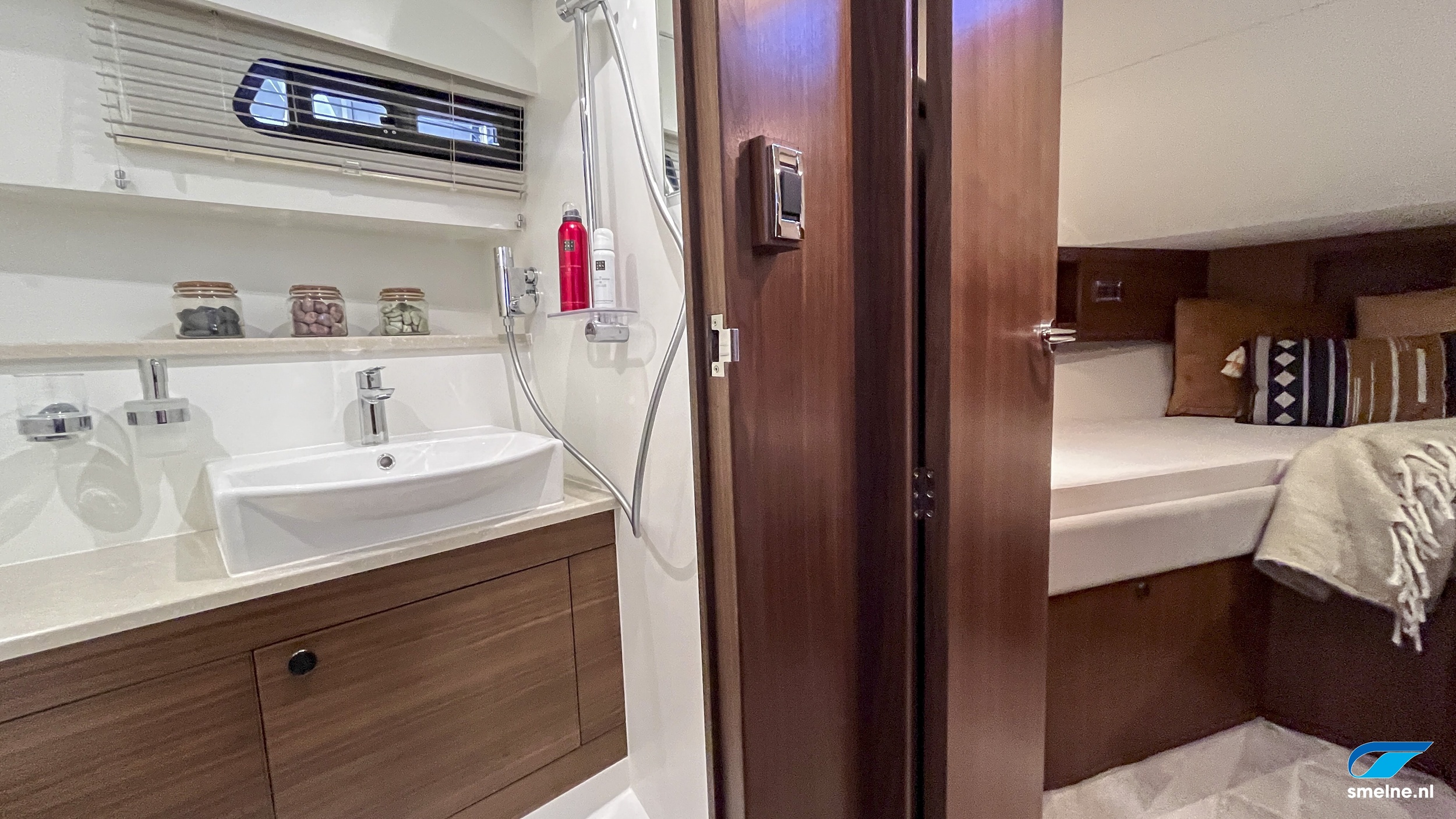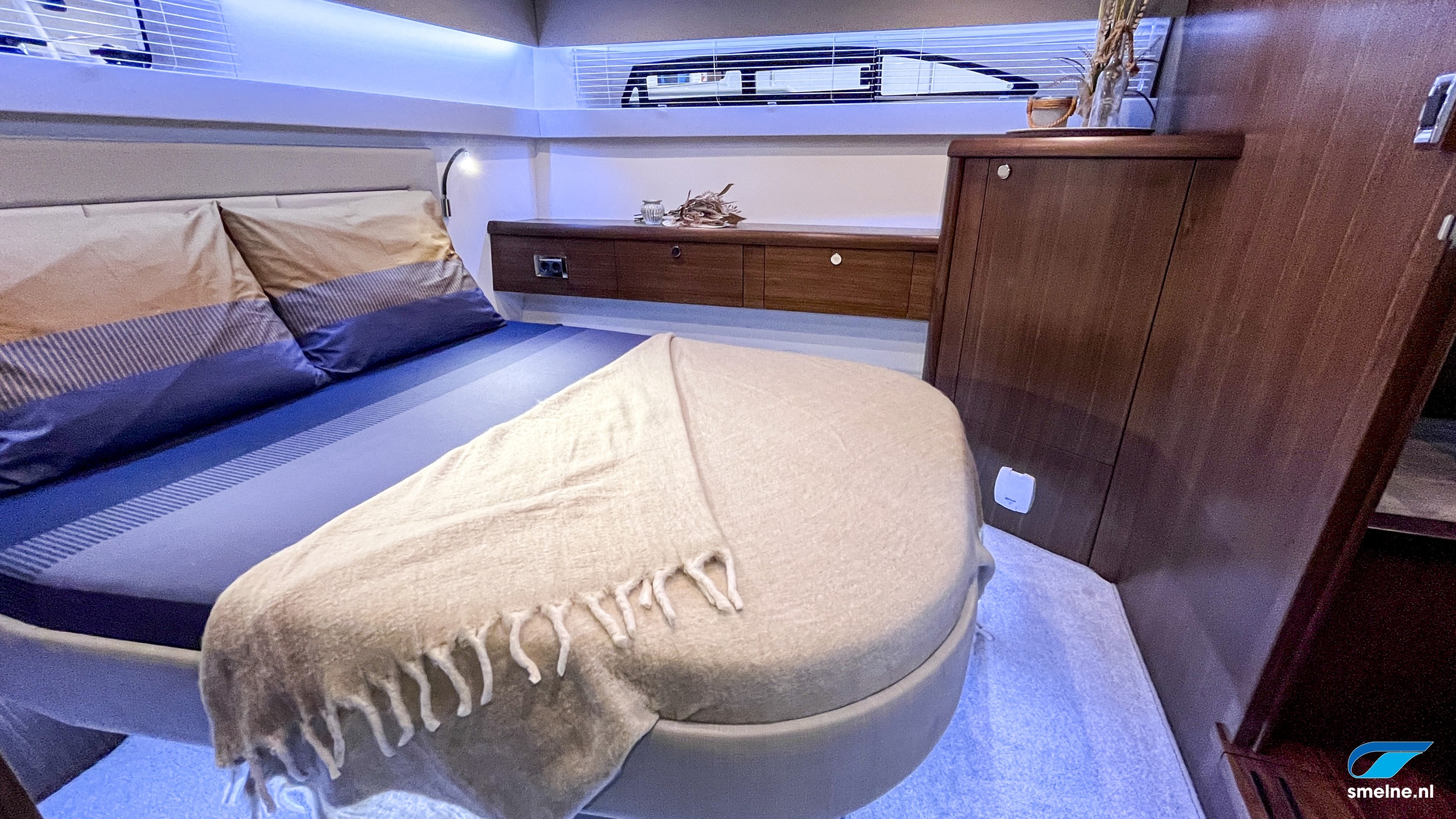 Naast de al zeer rijk uitgevoerde specificatielijst zijn de volgende items en opties het extra benoemen waard; prachtig walnoot interieur met massief lijstwerk wat afgewerkt is met panelen in moderne kleurstelling en voorzien van luxe lederen bekleding, jaloezieën door gehele vaartuig, HIMACS werkbladen in kombuis en sanitaire ruimtes, dubbele RVS spoelbak en geïntegreerde afvalemmer in keuken, Bosch wasmachine, groot dakluik met verduistering en insecten hor voor optimale ventilatie in salon, luxe LED verlichting door gehele vaartuig, oriëntatie verlichting in spiegeltrap, coming-/leaving boat verlichting op achterdek, stuurstandbank met swingback rugleuning, elektronische motorbediening, ontwasemingsunctie op windscherm, USB + 12V aansluiting bij stuurstand, extra luidsprekers in instrumentenbeugel, RVS fenderhouders (voor 6 fenders) op zwemplateau, etc. etc.
