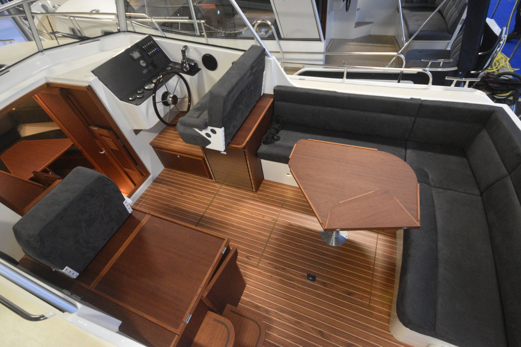 Luxe dashboard voorbereid voor navigatie apparatuur zoals een grote kaartplotter of een ipad.
