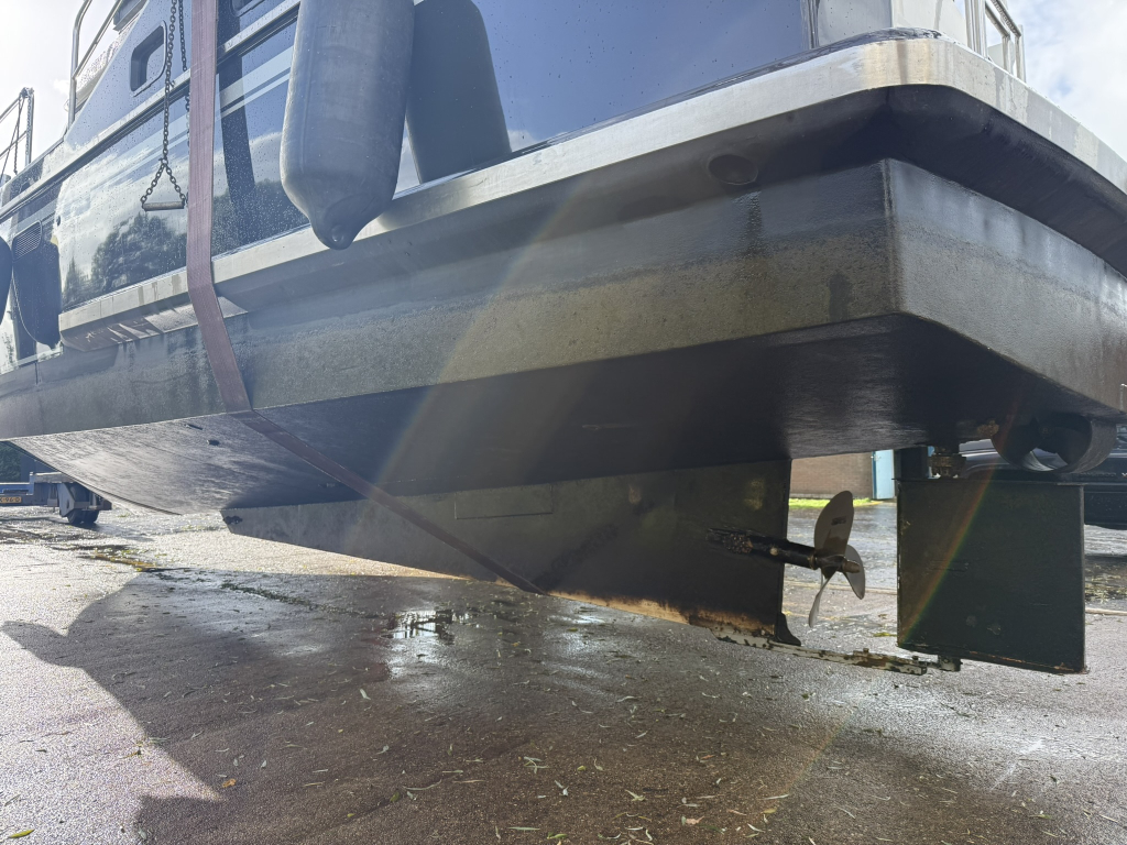 Ruim breed en stoer motorschip met boeg en hekschroefOnderwaterschip gestraald 2017 en behandeld 2025Vlakmeting 2025Startaccu yellowtop 3/201824V accu's b