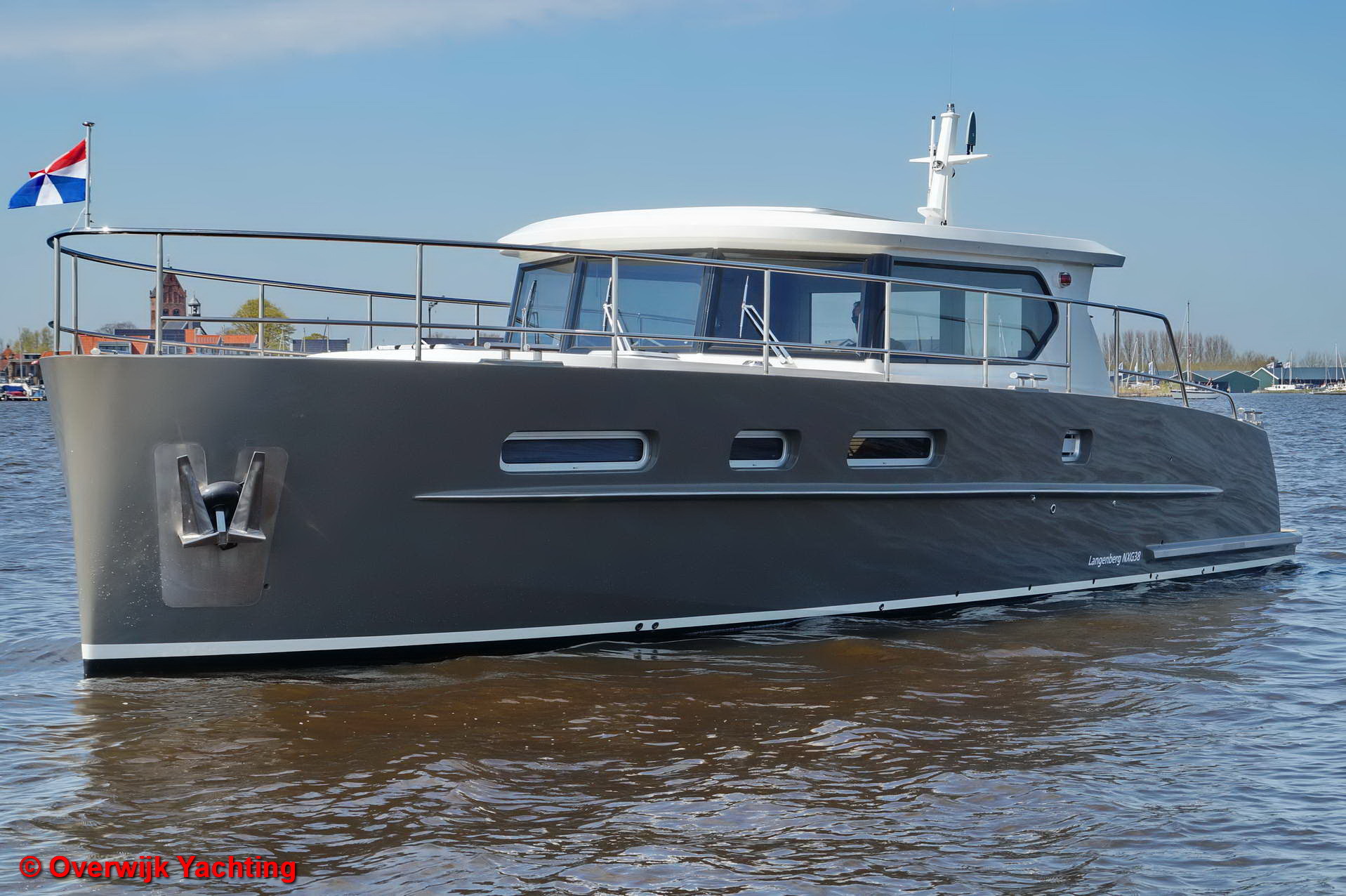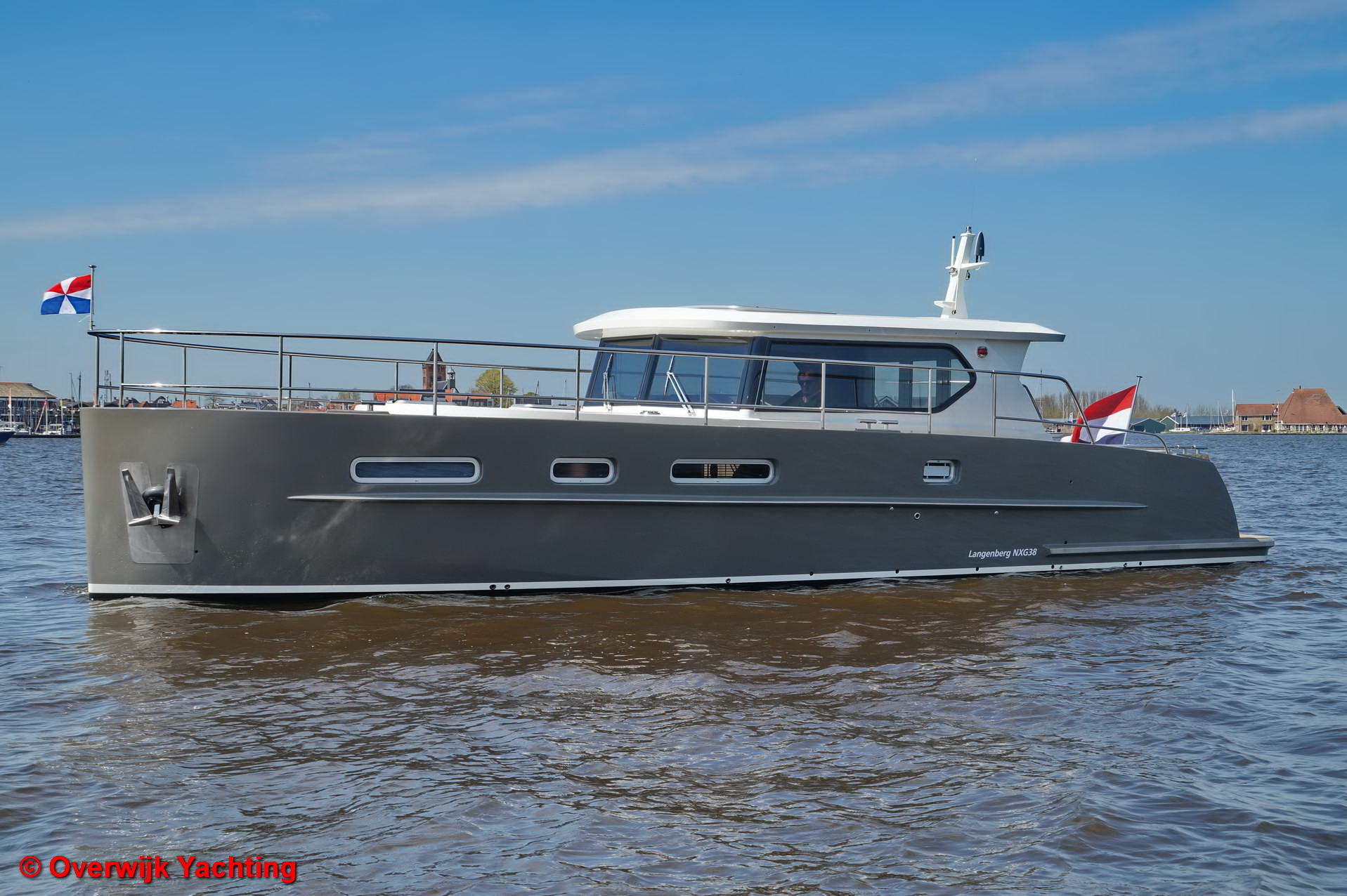 De NXG 38 is de kleinste telg uit de serie maar ondanks dat is het een serieus schip. De multiknikspant romp, het geveegde achterschip en het vlak van maar liefst 6 mm dik geven hem de stabiliteit en vaareigenschappen die je pas bij veel grotere schepen verwacht. De doorvaarthoogte met gestreken mast is maar 2,45 meter en dat maakt het vaargebied bijzonder groot.