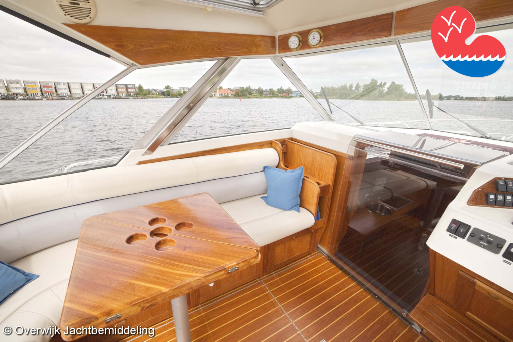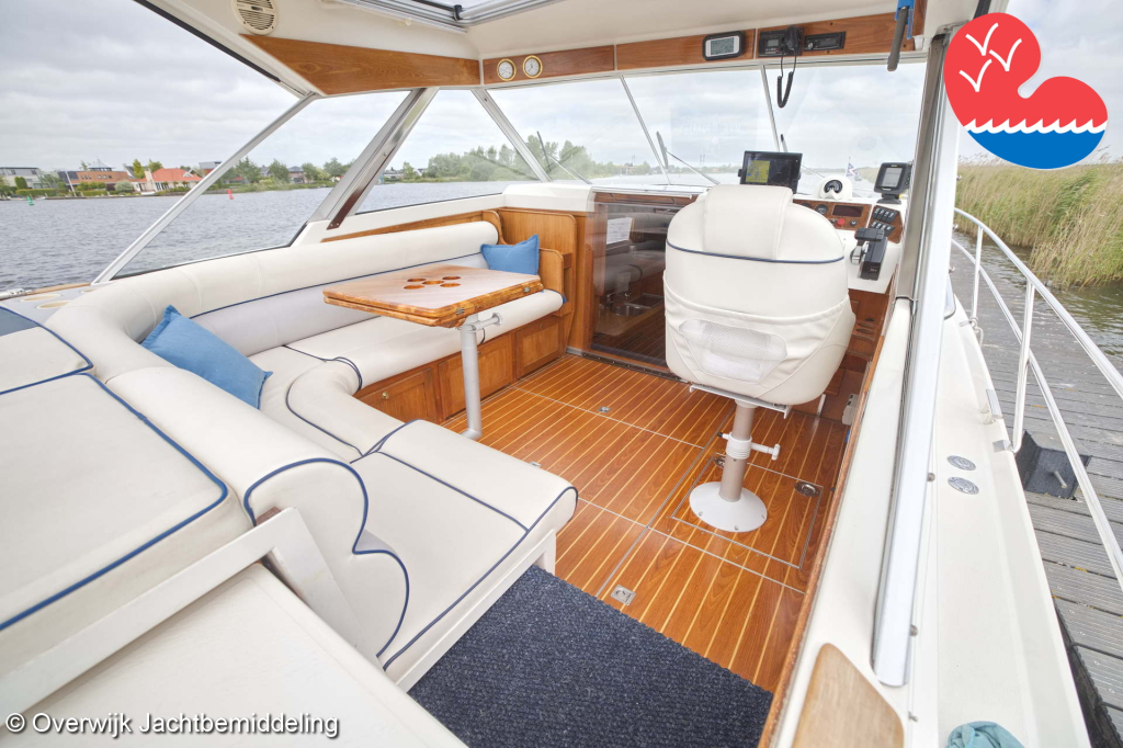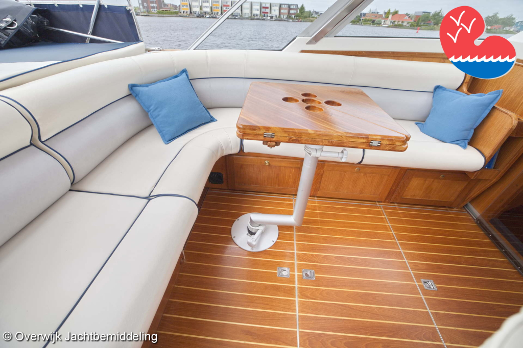 De gemiddelde watersporter kent ongetwijfeld het Noorse merk Scand waarvan er vele -meestal kleine- spitsgatters rondvaren. Het bedrijf bouwt echter ook grotere luxe jachten waar deze ontzettend fraaie Scand 3500 Atlantic een treffend voorbeeld van is. Meestal ook met veel motorvermogen om de fjorden in Noorwegen snel te kunnen doorkruisen. Zo ook deze die met maar liefst 300pk een snelheid van bijna 40 km/uur haalt. Hertog Jan kan echter ook rustig cruisen door de kleinste Nederlandse wateren en heeft veel voorzieningen en luxe om het de opvarenden zo goed mogelijk naar de zin te maken. Er zijn maar liefst vijf vaste slaapplaatsen en twee badkamers. Gasten meenemen is dus geen enkel probleem.