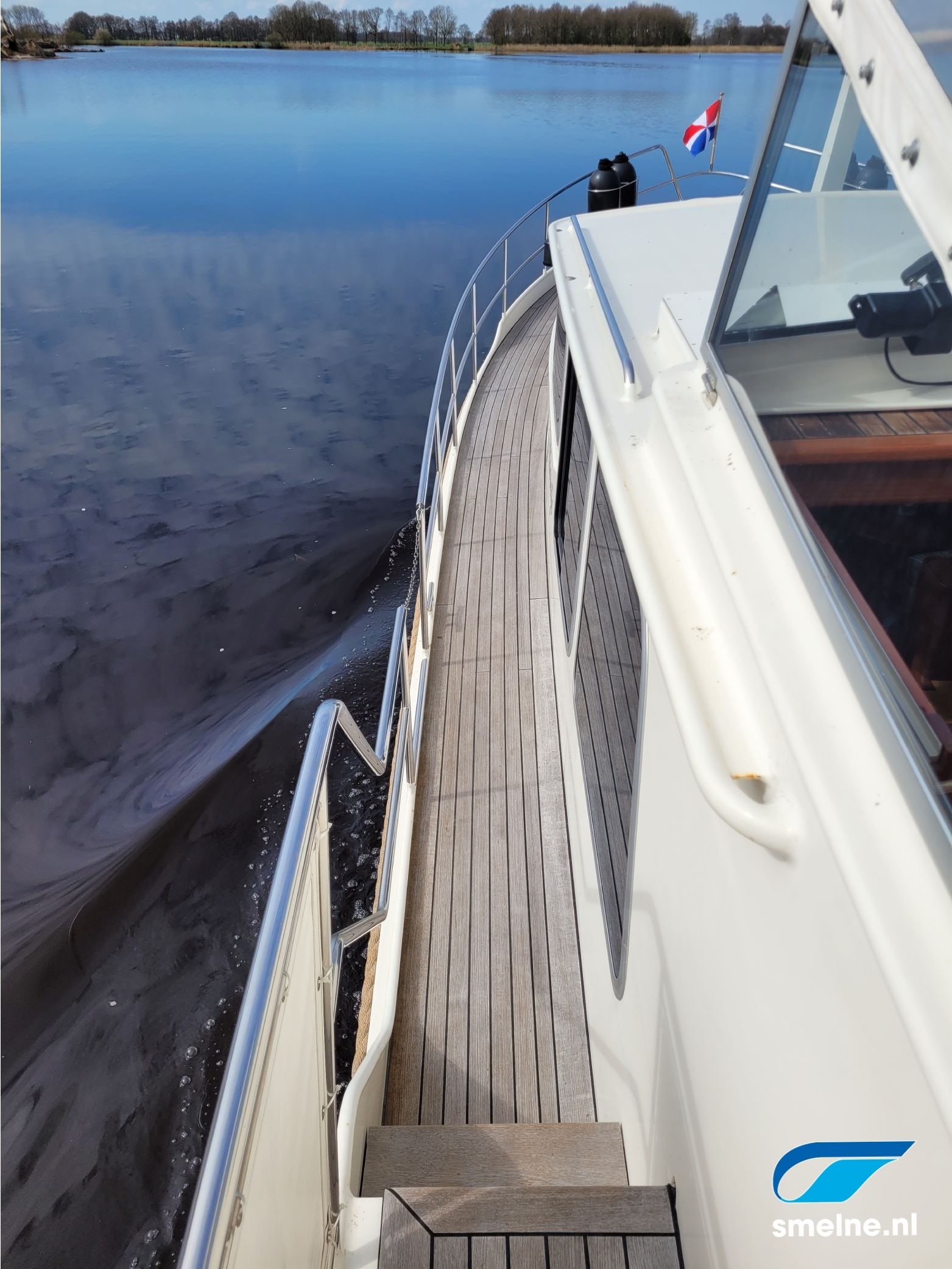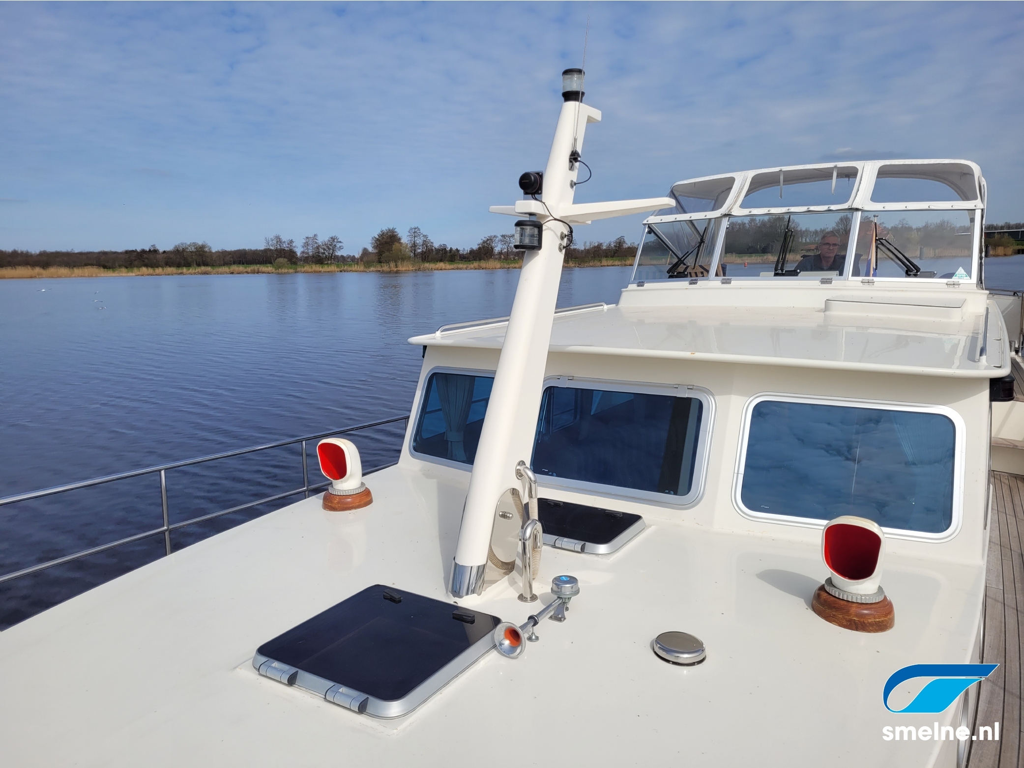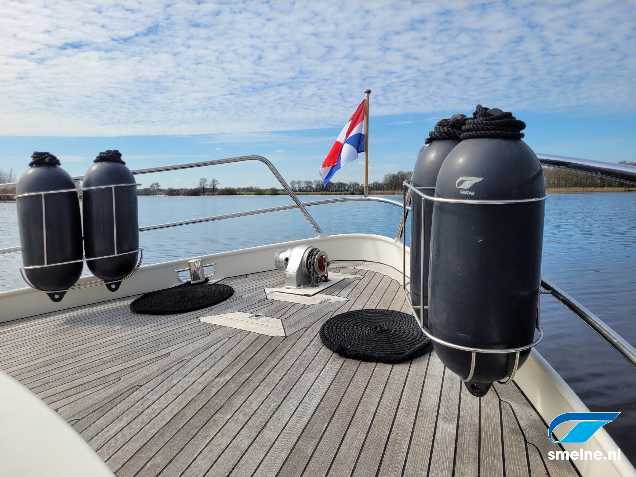 Deze Smelne Vlet is beschikbaar van de eerste eigenaar en compleet uitgevoerd met boeg-/ en hekschroef, acculader, omvormer, boiler, verwarming, teakdek, fietsendrager aan railing, RVS fenderkorven (6 fenders), dubbel dakluik in voorkajuitdak, 2x schuifraam met hor in salon.