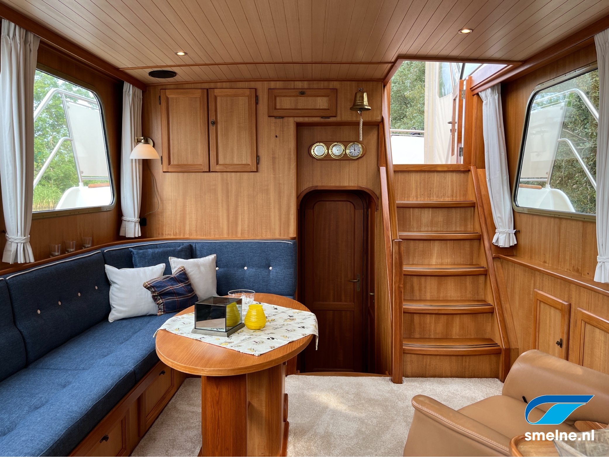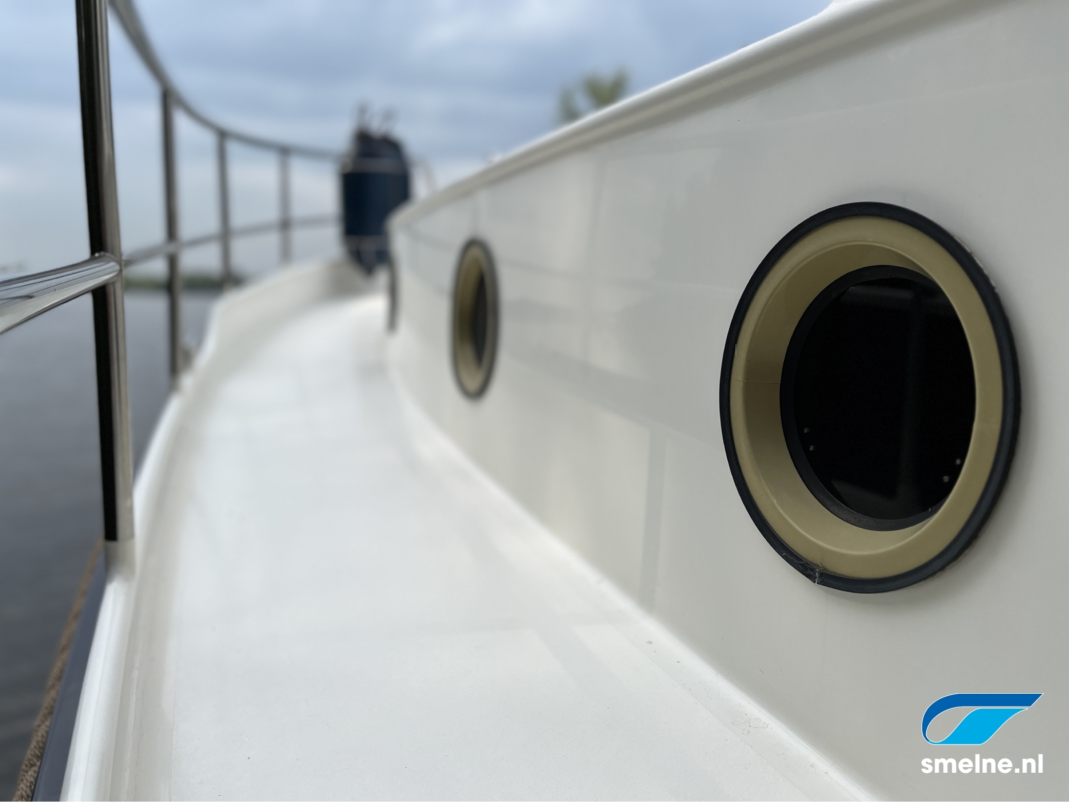 Aan boord van deze Smelne Vlet 1200 ervaart u het genot van varen in stijl en comfort. Dit tijdloze model, met haar klassieke details en degelijke bouw is een toonbeeld van Nederlands vakmanschap. Daar bijkomstig is de leeftijd van dit exemplaar slechts een getal gezien het feit dat de eigenaar haar altijd tot in detail heeft verzorgd en door diverse upgrades perfect bij de tijd gehouden heeft. Deze Smelne Vlet 1200 zal gegarandeerd de aandacht trekken, waar u ook vaart!