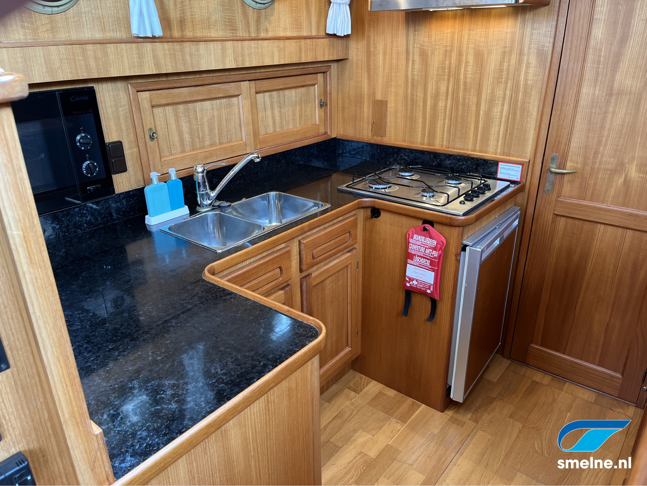 Op een lengte van net geen 13 meter biedt deze Smelne Vlet 1200 royale leefruimtes, zowel binnen als buiten. De ruime en lichte salon, volledig uitgeruste keuken en comfortabele slaapvertrekken maken ieder verblijf aan boord tot een luxe ervaring.