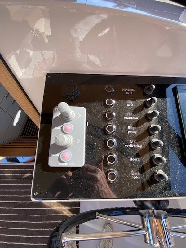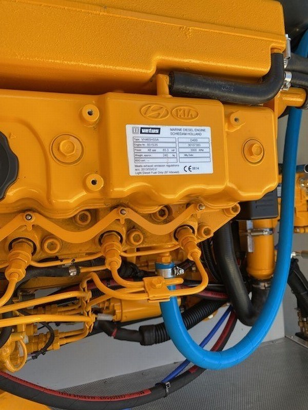 Vetus 4 cilinder diesel van 85 PK met RVS schroefas en water gesmeerd lager, Vetus elektronische motor bediening, 4 blads schroef, Boeg- en hekschroef Quik met 4 Optima Red Top accu's met spanning beveiliging, Victron lader, omvormer, met Gerbo groot scherm indicatie, 2000 Watt en 80 AH laden met bijbehorende Linx shunt en protectors, 3 x AGM gebruikers accu's 245 AH, Custom made schakelpaneel binnen en buiten, elektrische bilgepomp,hydraulische besturing van Vetus, WC met versnijder en vuilwaterpomp met indicator,