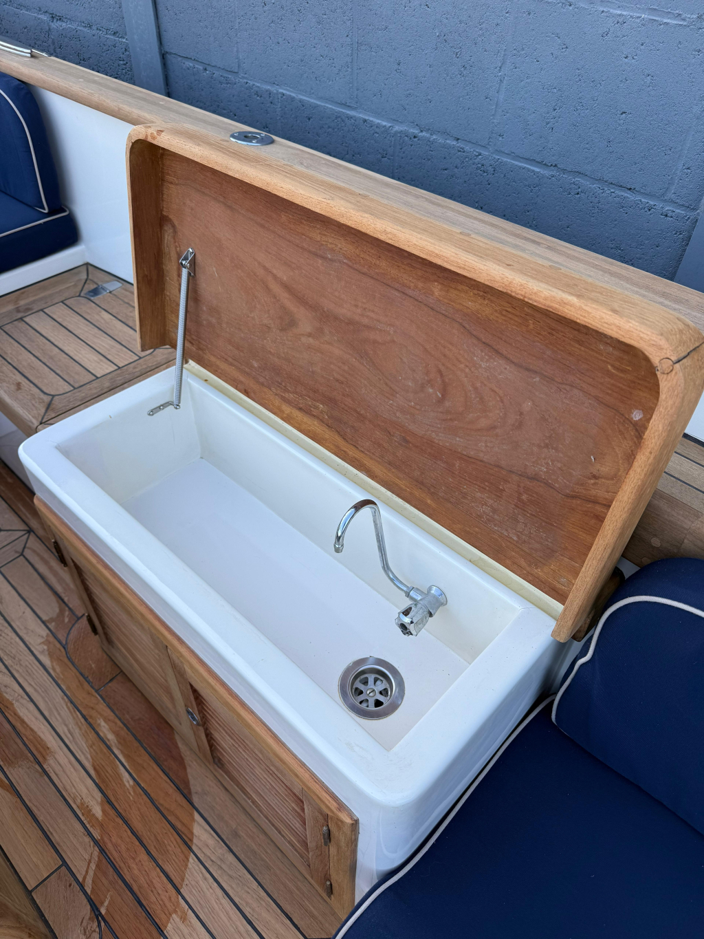 - Teak stuurstand en teak motorkist