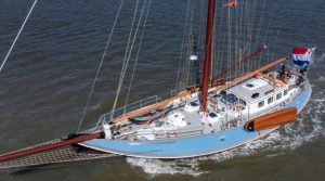 Tijdens de laatste Hiswatewater lag aan de botenboulevard tussen andere grote jachten een bijzondere blikvanger die menige liefhebber van klassieke schepen tot een bezoek aan deze vaak door hen verguisde wereld van glimmend plastiek wist te verleiden.